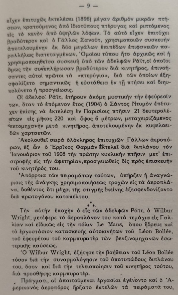 Οι δύο σελίδες από το βιβλίο του Βροντάκη που αναφέρουν την πτήση του Μιχαλόπουλου. Άστοχος ως προς το κομμάτι του ρεκόρ διάρκειας πτήσεως, αλλά η υποσημείωση στο τέλος υπήρξε σημαντική για την μεταγενέστερη προσπάθεια ταυτοποίησης