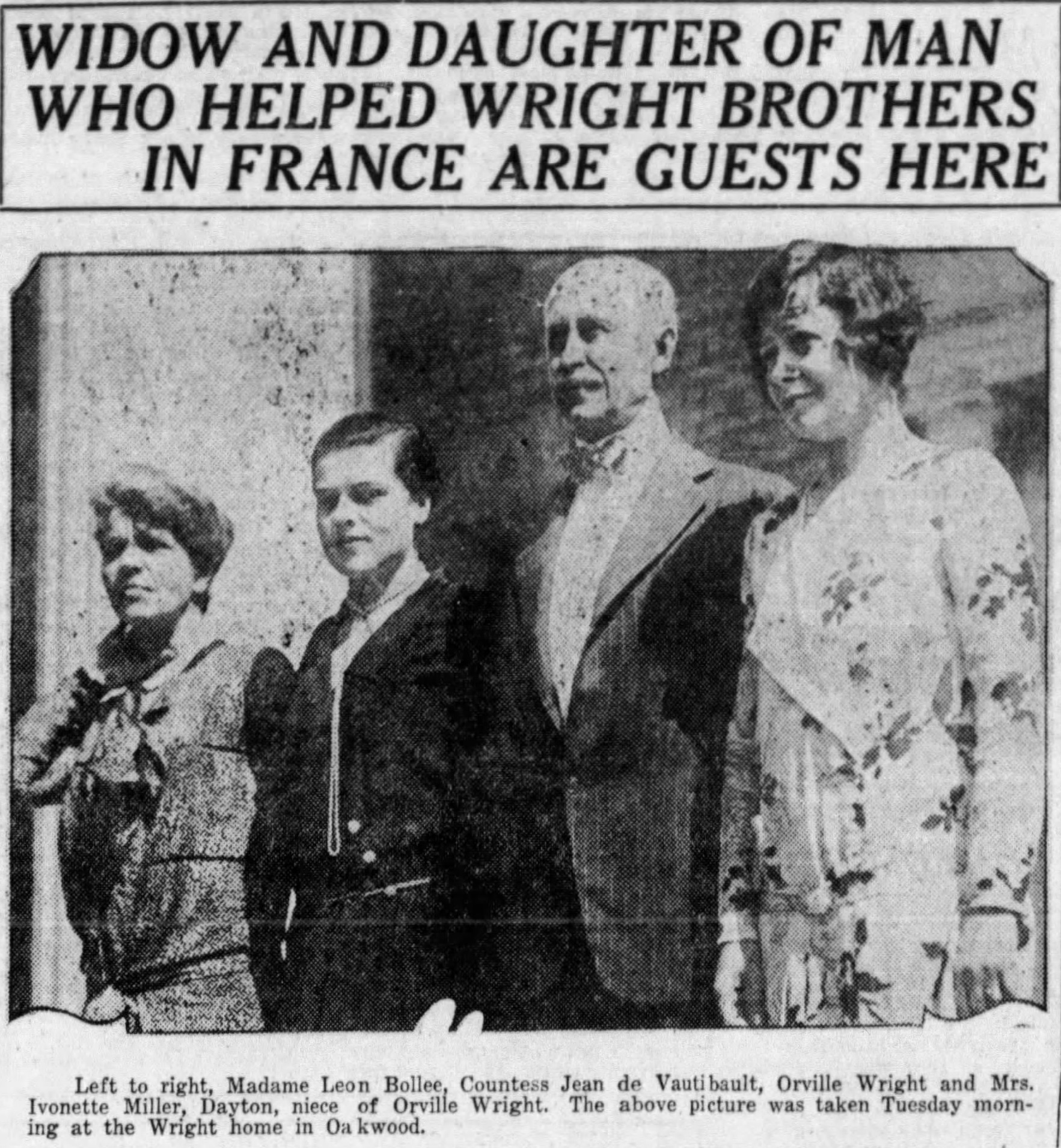Μετά τον θάνατο του Wilbur (1912) και του συζύγου της το 1913, η Carlotta κράτησε επαφές με την οικογένεια Wright. To 1920 επισκέφτηκε τον Orville στην Αμερική και του παρέδωσε φωτογραφικό άλμπουμ από την παρουσία του αδελφού του στη Γαλλία. Από αριστερά στη φωτογραφία: H Carlotta Bollée, η κόρη της Élisabeth de Vautibault (επώνυμο που έλαβε απο τον πρώτο της γάμο με τον Κόμη de Vautibault) και ο Orville Wright