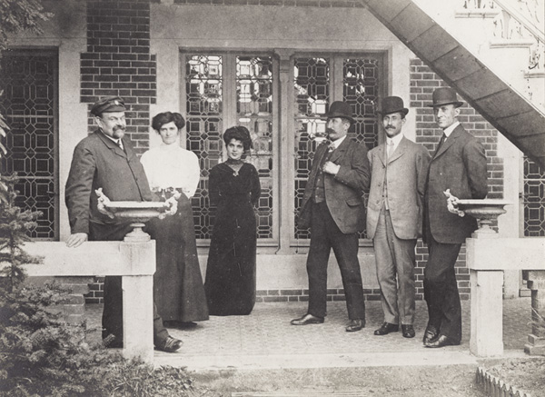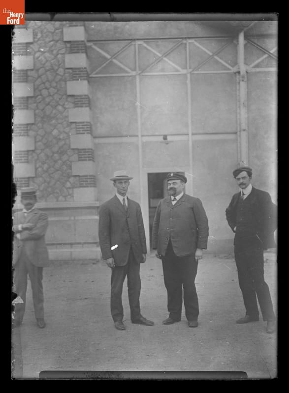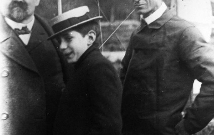 Τα στοιχεία που αναφέρει η φωτογραφία είναι, Wilbur Wright 12 Σεπτεμβρίου 1908. Χωρίς να απαιτούνται ειδικές ικανότητες αναγνώρισης προσώπου, αριστερά όπως βλέπουμε την φωτογραφία απεικονίζεται ο Léon Bollée. Πιθανότατα, ανάμεσα τους βρίσκεται ο μεταφραστής τους, ο εντεκάχρονος Μιχαλόπουλος. Πηγη: gallica.bnf.fr / Bibliothèque nationale de France