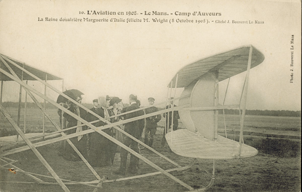 Φωτογραφία: Wright State University – Η χήρα βασίλισσα της Ιταλίας, Μαργαρίτα ντι Σαβοΐα, συγχαίρει τον Wilbur Wright για την πτήση του.