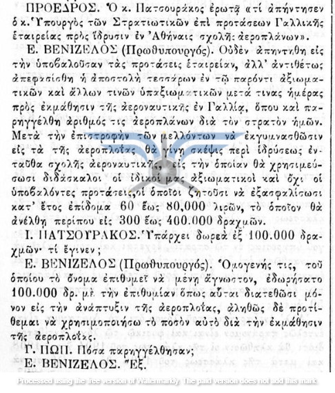 Ο αριθμός των υπό παραγγελία αεροπλάνων πιστοποιήθηκε οριστικά στις 11/12/1911 από τα πλέον επίσημα χείλη. Όπως προκύπτει από την Εφημερίδα Συζητήσεων της Βουλής (Συνεδρίαση 190 – 12/12/1911), ο Πρωθυπουργός και Υπουργός Στρατιωτικών Ελευθέριος Βενιζέλος, απαντώντας στον Βουλευτή Λακωνίας Ιωάννη Πατσουράκο σχετικά με τον αριθμό των παραγγελθέντων αεροπλάνων, δήλωσε ότι αυτά ανέρχονταν σε έξι. Ιδιαίτερο ενδιαφέρον παρουσιάζει και η πρόθεση ίδρυσης αεροναυτικής σχολής στην Ελλάδα, καθώς το κόστος εκπαίδευσης αεροπόρων στο εξωτερικό κρινόταν υπερβολικό. Αν και δεν αναφέρεται η τιμή μονάδας των Henry Farman, η εφημερίδα ΑΘΗΝΑΙ (25/12/1911) πληροφορεί ότι είχε καταβληθεί προκαταβολή για τέσσερα μυδραλιοβόλα και έξι αεροπλάνα που είχε παραγγείλει ο Ελληνικός Στρατός.