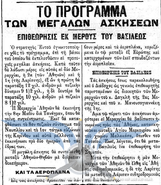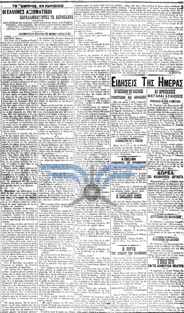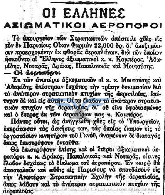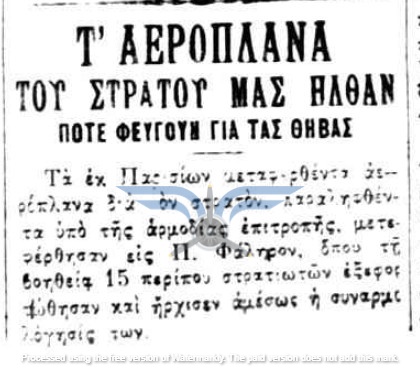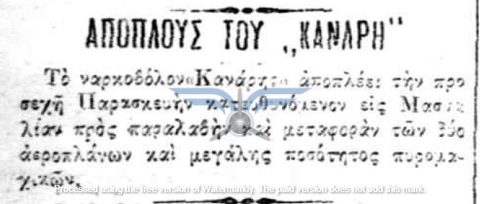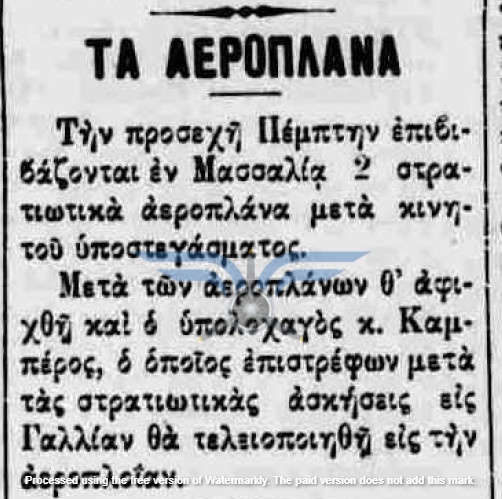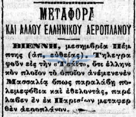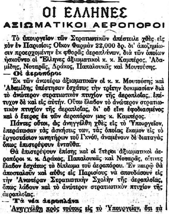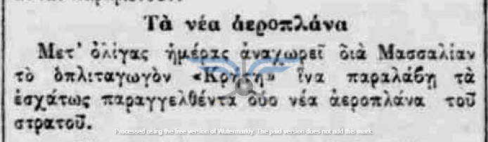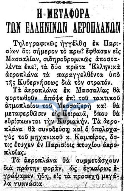 Στις 18 και 19/03/1912, τουλάχιστον πέντε εφημερίδες δημοσίευσαν την είδηση ότι τα αεροπλάνα θα έφθαναν στην Ελλάδα το πρώτο δεκαήμερο του Απριλίου. Τις ίδιες ημέρες ανακοινώθηκε και η αποστολή μηχανικών στη Γαλλία για εκπαίδευση στην επισκευή αεροπλάνων, καθώς και η αποστολή δύο ακόμη υποψήφιων αεροπόρων, του Υπίλαρχου Πανούτσου Νοταρά και του Υπολοχαγού Μάρκου Δράκου. Ωστόσο, οι ημερομηνίες παρήλθαν και οι χρονικές πιέσεις αυξάνονταν. Όλες οι βαλκανικές χώρες προετοιμάζονταν για τον επικείμενο πόλεμο και ο Ελληνικός Στρατός είχε αποφασίσει, κατά παρέκκλιση της καθιερωμένης πρακτικής, να πραγματοποιήσει τα μεγάλα γυμνάσια στα μέσα Μαΐου, ώστε να δοκιμάσει τη χρησιμότητα του αεροπλάνου στις αναγνωριστικές αποστολές. Παρ’ όλα αυτά, ακόμη δεν υπήρχαν ούτε αεροπλάνα ούτε αεροπόροι στην Ελλάδα, ενώ η άφιξή τους από τη Γαλλία αναμενόταν διαρκώς.