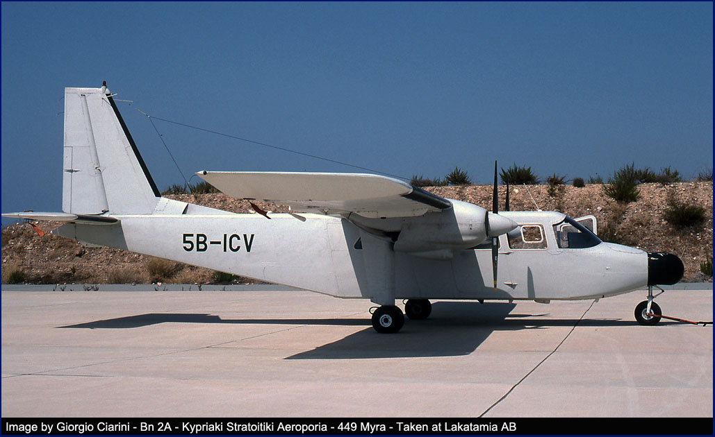 Η Διοίκηση Αεροπορίας, προμηθεύτηκε το BN2B-21 το 1984, για να καλύψει τις ανάγκες εναέριας παρατήρησής και ελαφρών μεταφορών. Θεωρείται ο φυσικός αντικαταστάτης του Expeditor και για αυτό αρκετοί θεωρούν ότι το C-45 παρέμεινε σε υπηρεσία μέχρι την παραλαβή του Maritime Defender. Το 1999 πέρασε από πρόγραμμα γενικής επισκευής και ανακατασκευής και από το 2012 βρίσκεται σε κατάσταση αποθήκευσης. Η κυπριακή αστυνομία, παρέλαβε το δικό της BN-2T το 1990, για αποστολές θαλάσσιας επιτήρησης και περιπολίας. Πωλήθηκε το 2012, καθώς κρίθηκε αντιοικονομική η επισκευή του, μετά την εμφάνιση διάβρωσης.