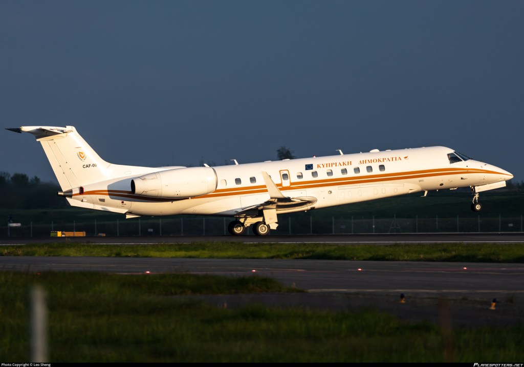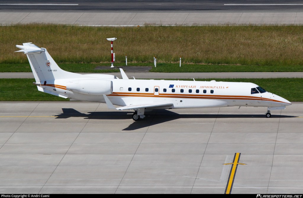 Η δεδομένη ανάγκη της Κυπριακής Δημοκρατίας για ένα κυβερνητικό αεροσκάφος, καλύφθηκε από την παραχώρηση του EMB-135BJ από την Ελληνική Πολεμική Αεροπορία (πρώην 135L-484). Η ΠΑ μετά την παραλαβή του Falcon 7X, διάθετε 4 κυβερνητικά αεροπλάνα και υπήρχε η πρόθεση πώλησης τουλάχιστον τους ενός από αυτά. Η αδυναμία πώλησης των Embraer στην πολιτική αγορά, ταυτόχρονα με την Κυπριακή απαίτηση, δημιούργησε μια αμοιβαία επωφελή συναλλαγή, όπου η ΠΑ απαλλάχθηκε από το κόστος συντήρησης, ενώ για την Κύπρο το κόστος εξυπηρέτησης του αεροσκάφους, δεν υπερβαίνει το κόστος μετακίνησης των κυβερνητικών στελεχών στο εξωτερικό. Το ΕΜΒ-135BJ ήταν το νεότερο από τα δύο της αεροπορίας και είχε παραληφθεί το 2002. Η εσωτερική διαμόρφωση διαθέτει θέσεις για 15 επιβάτες και η εμβέλεια του καλύπτει όλους τους πιθανούς ευρωπαϊκούς προορισμούς.