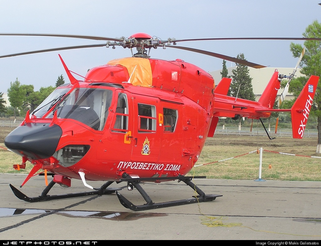 H γερμανική MBB (μετέπειτα Eurocopter) και η ιαπωνική Kawasaki, αποφάσισαν να αναπτύξουν από κοινού ένα ελικόπτερο γενικής χρήσης, καταλήγοντας στο σχέδιο του BK 117. Η παραγωγή του ξεκίνησε το 1982 και αποδείχθηκε δημοφιλές στην κατηγορία του, γεγονός που οδήγησε στην περαιτέρω εξέλιξη του, ως Eurocopter EC-145. Για το Πυροσβεστικό Σώμα, ήταν τα πρώτα αυτόνομα εναέρια μέσα που αποκτούσε, δημιουργώντας την αντίστοιχη υπηρεσία. Διαθέτουν τη δυνατότητα προσαρμογής κάδου πυρόσβεσης χωρητικότητας 910lt, αλλά συνήθως έχουν τον κρίσιμο ρόλο συντονισμού των επίγειων και εναέριων μέσων κατάσβεσης δασικών πυρκαγιών. Επίσης, μπορούν να μεταφέρουν ομάδες άμεσης επέμβασης ως έξι ατόμων, και περιστασιακά συμμετέχουν σε αποστολές έρευνας διάσωσης και αεροδιακομιδών.