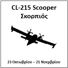 Αν ανήκεις στον Σκορπιό, είσαι σαν το Canadair. Παθιασμένος με ξεχωριστό χαρακτήρα και εσωτερική δύναμη που σε κάνει αξιοπρόσεκτο, όσο και αν προσπαθείς να κρατηθείς στο παρασκήνιο. Έχεις τρομερά ανεπτυγμένη διαίσθηση και μπορείς να διαβάζεις την εξέλιξη των καταστάσεων, επεμβαίνοντας γρήγορα, ‘’σβήνοντας’’ όλα τα προβλήματα έγκαιρα. Φυσικός ηγέτης, θα βρεις τη λύση, ακόμα και αν χρειαστεί να κινηθείς μέσα σε αναταράξεις και χαμηλή ορατότητα. Έχοντας κυβερνήτη τον Πλούτωνα, όταν οι άλλοι σε έχουν ξεγραμμένο, εσύ ‘’ξαναγεννιέσαι’’ ακόμα καλύτερος (Cl-215 / Cl-215T / Cl-415 / Cl-515).